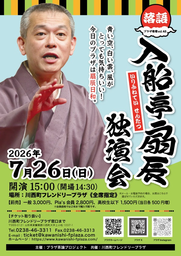 一般3,000円、プラス会員2,800円、高校生以下1,500円(当日各500円増し)