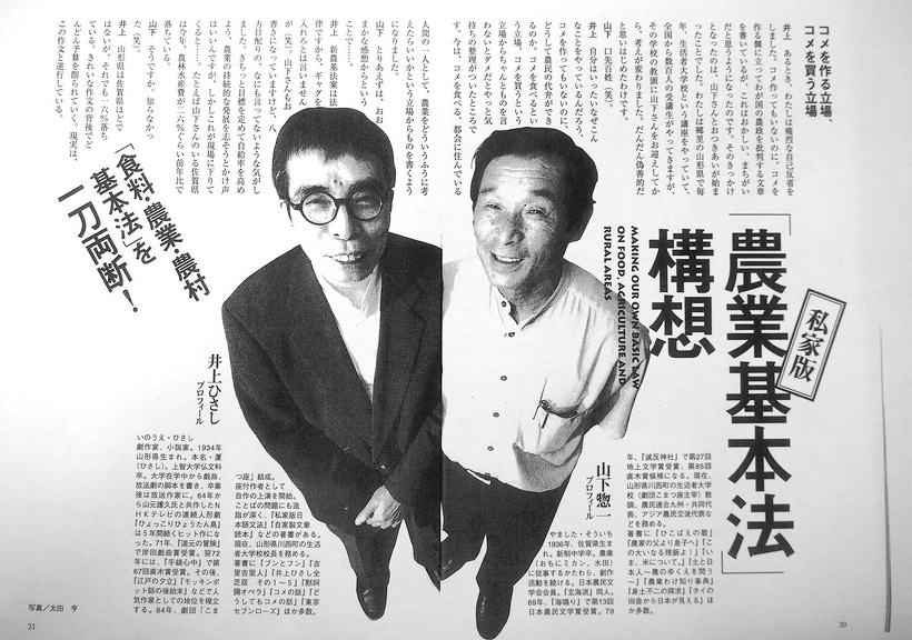 山下さんの歯に衣着せぬ言動は、この対談で井上ひさしさんを「口先百姓」と言って笑わせています。ぜひ山下さんの著書、井上さんとの対談などをご覧ください。