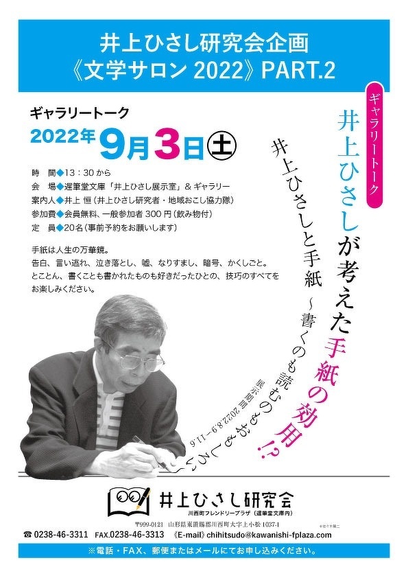 井上ひさし研究会企画《文学サロン2022》PART.2井上ひさしが考えた手紙の効用!?井上恒(いのうえひさし)によるギャラリートーク