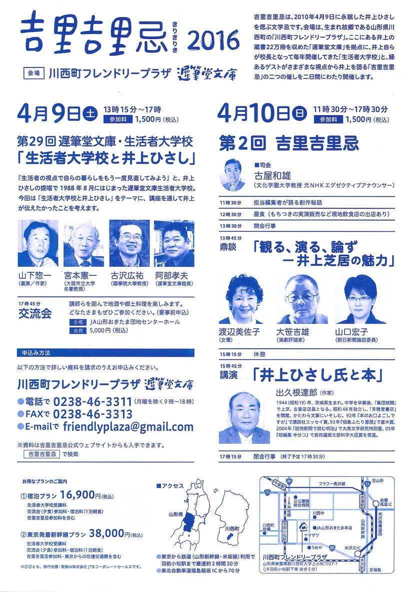 きりきりき第2回 吉里吉里忌2016ふるさと山形 川西で井上ひさしを語り継ぐ