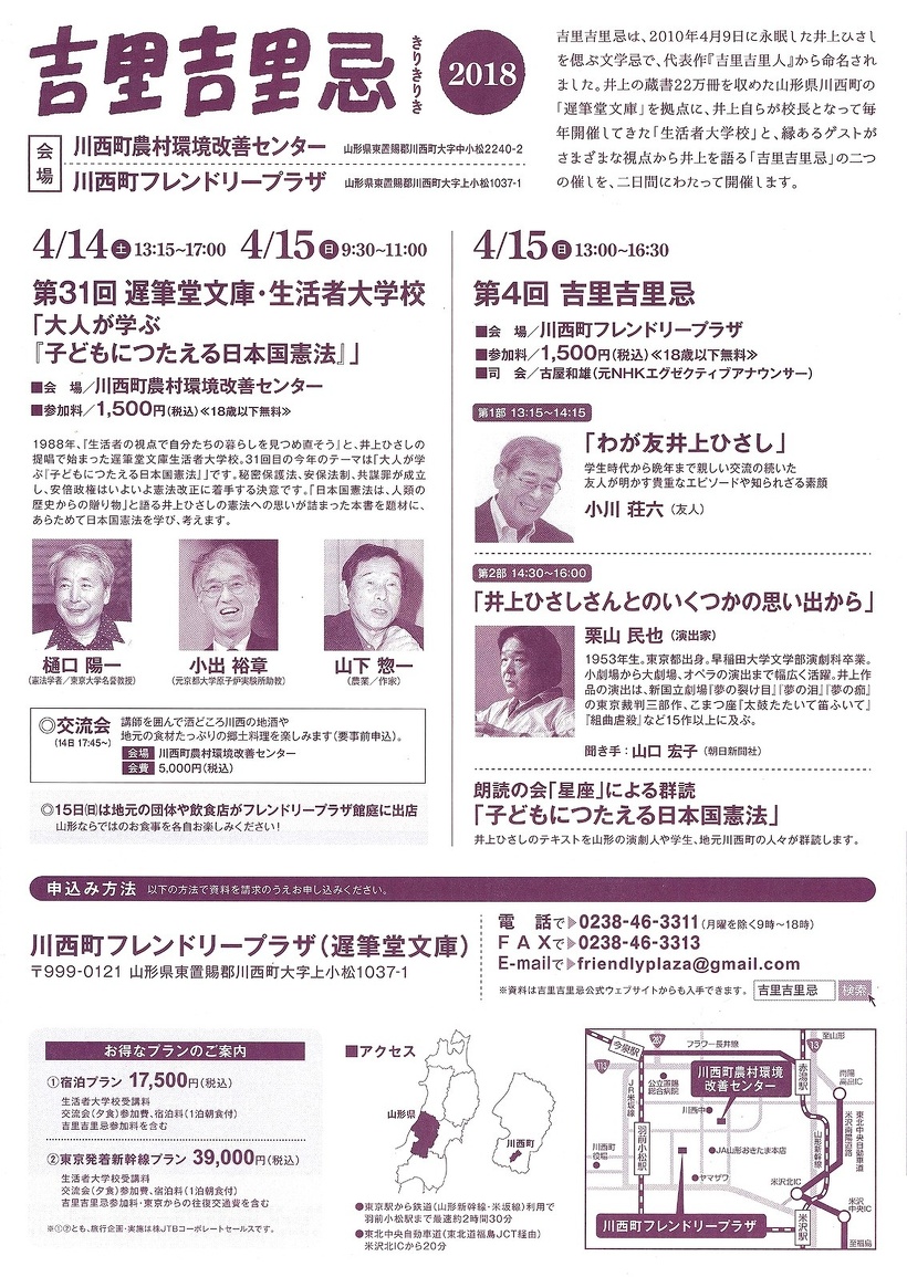 きりきりき第4回 吉里吉里忌2018ふるさと山形 川西で井上ひさしを語り継ぐ
