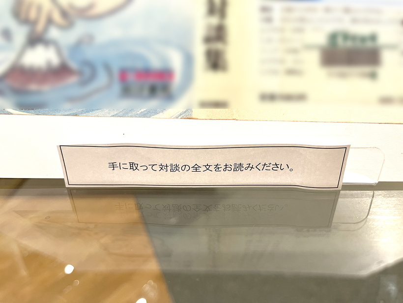 そこで企画展では、(対談の一部ではありますが)内容が読めるように配置しました。