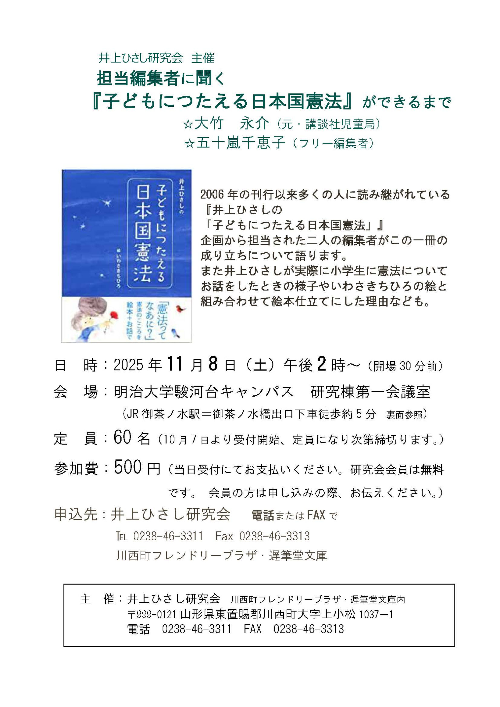 【井上ひさし研究会主催】担当編集者に聞く「子どもにつたえる日本国憲法」ができるまで