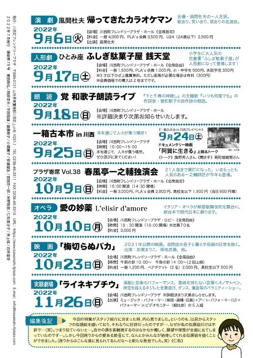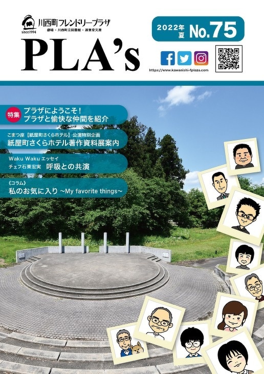 PLA's通信 No.75 広報・情報ライブラリ プラザ・町立図書館・遅筆堂文庫で予定されている催物の旬な話題をご紹介! その他、プラザにゆかりのある方々のエッセイやコラムなどを収録しています。 『PLA's』は友の会PLA's【プラス会員】会報です。発行後、プラス会員様へ発送いたします。 発送ご希望の方は会員登録をよろしくお願いいたします。 友の会PLA's【プラス会員】についてはコチラ PLA's通信 75号 プラス通信No.75