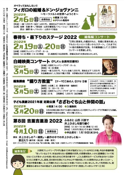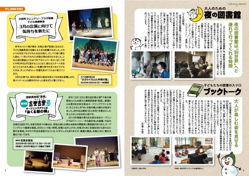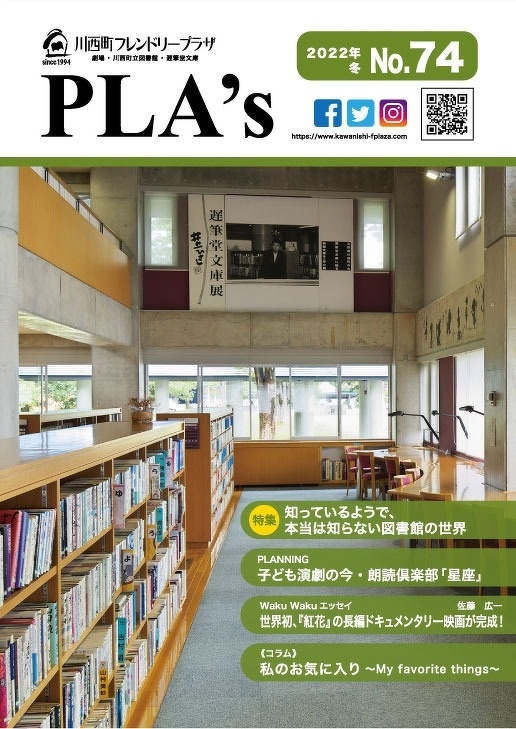 PLA's通信 No.74 広報・情報ライブラリ プラザ・町立図書館・遅筆堂文庫で予定されている催物の旬な話題をご紹介! その他、プラザにゆかりのある方々のエッセイやコラムなどを収録しています。 『PLA's』は友の会PLA's【プラス会員】会報です。発行後、プラス会員様へ発送いたします。 発送ご希望の方は会員登録をよろしくお願いいたします。 友の会PLA's【プラス会員】についてはコチラ PLA's通信 74号 プラス通信No.73