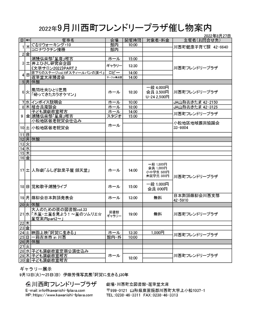 2022年9月催し物案内 更新日:2022年08月28日(日) 2022年9月催し物案内 下のアイコンをクリックいただくと、PDF版催し物案内をダウンロードしてご利用いただけます。 2022年9月催し物案内