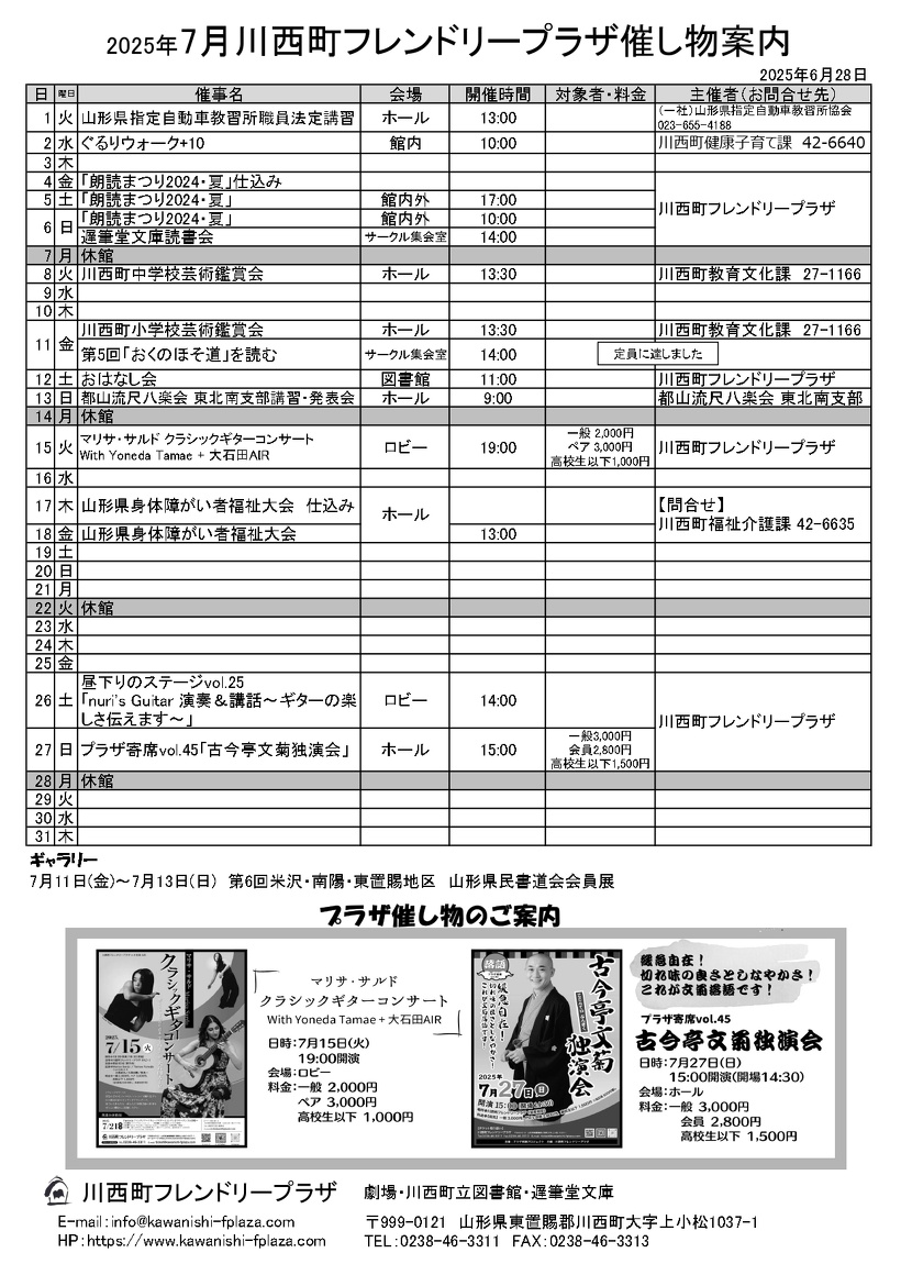 2025年7月催し物案内