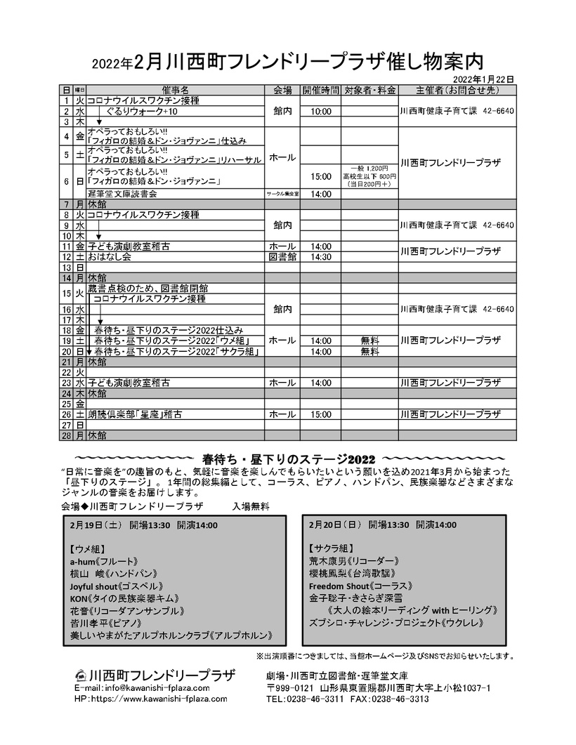 2022年2月催し物案内 更新日:2022年01月22日(土) 2022年2月催し物案内 下のアイコンをクリックいただくと、PDF版催し物案内をダウンロードしてご利用いただけます。 2022年2月催し物案内