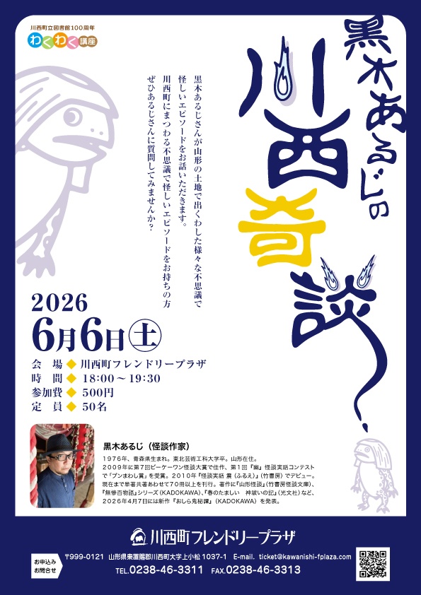 川西町立図書館100周年 わくわく講座黒木あるじの川西奇談山形の土地で出くわした不思議で怪しいエピソード