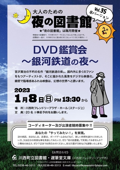 大人のための夜の図書館Vol.35DVD鑑賞会 〜銀河鉄道の夜〜宮沢賢治の不朽の名作「銀河鉄道の夜」