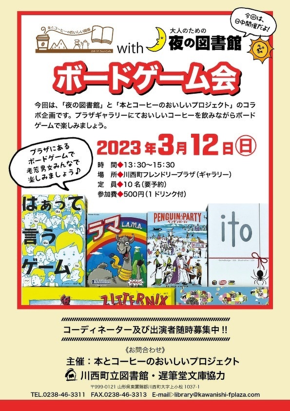 大人のための夜の図書館Vol.36ボードゲーム会本とコーヒーのおいしい関係with夜の図書館コラボ企画