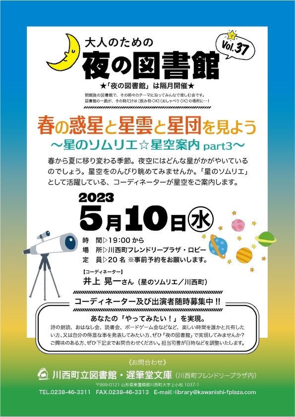 大人のための夜の図書館Vol.37春の惑星と星雲と星団を見よう〜星のソムリエ☆星空案内part3〜