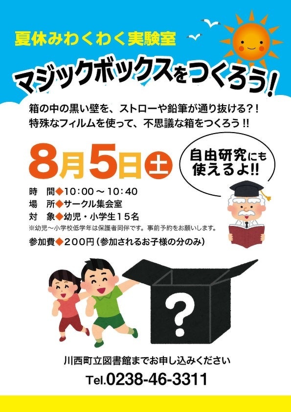 夏休みわくわく実験室マジックボックスをつくろう!川西町立図書館