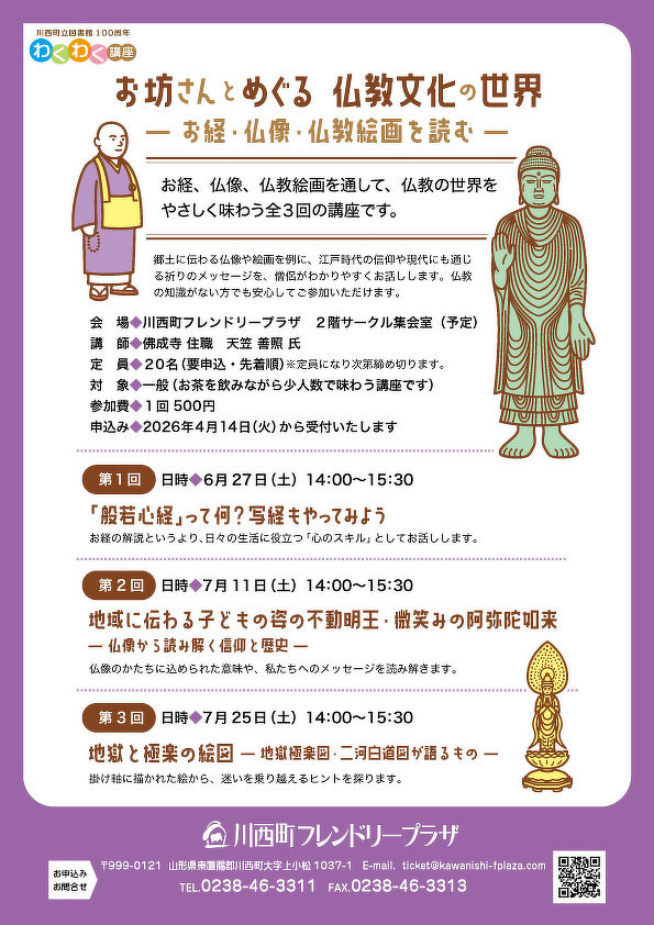 川西町立図書館100周年 わくわく講座お坊さんとめぐる 仏教文化の世界― お経・仏像・仏教絵画を読む ―