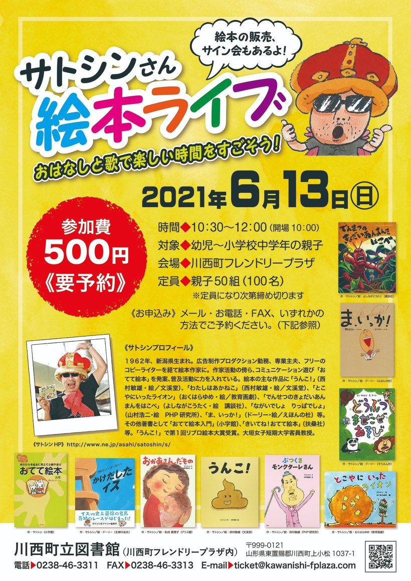 サトシンさん絵本ライブは定員に達しました。