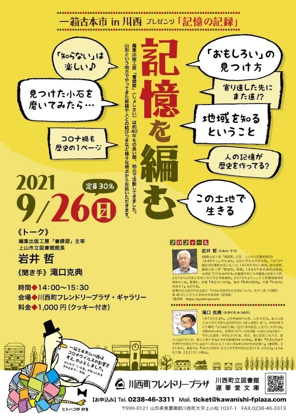岩井 哲(いわい てつ) 《編集出版工房「書肆犀」 主宰、上山市立図書館館長》