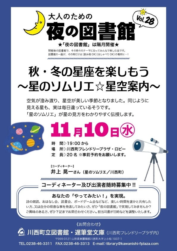 大人のための夜の図書館Vol.28秋・冬の星座を楽しもう〜星のソムリエ☆星空案内〜