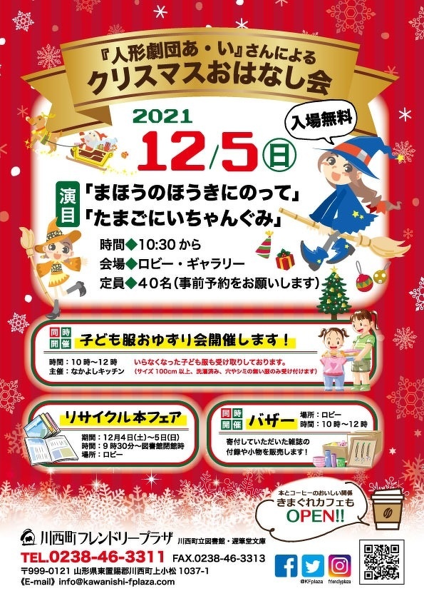 「人形劇団あ・い」さんによる クリスマスおはなし会子ども服お譲り会・バザー・リサクル本フェアも同時開催