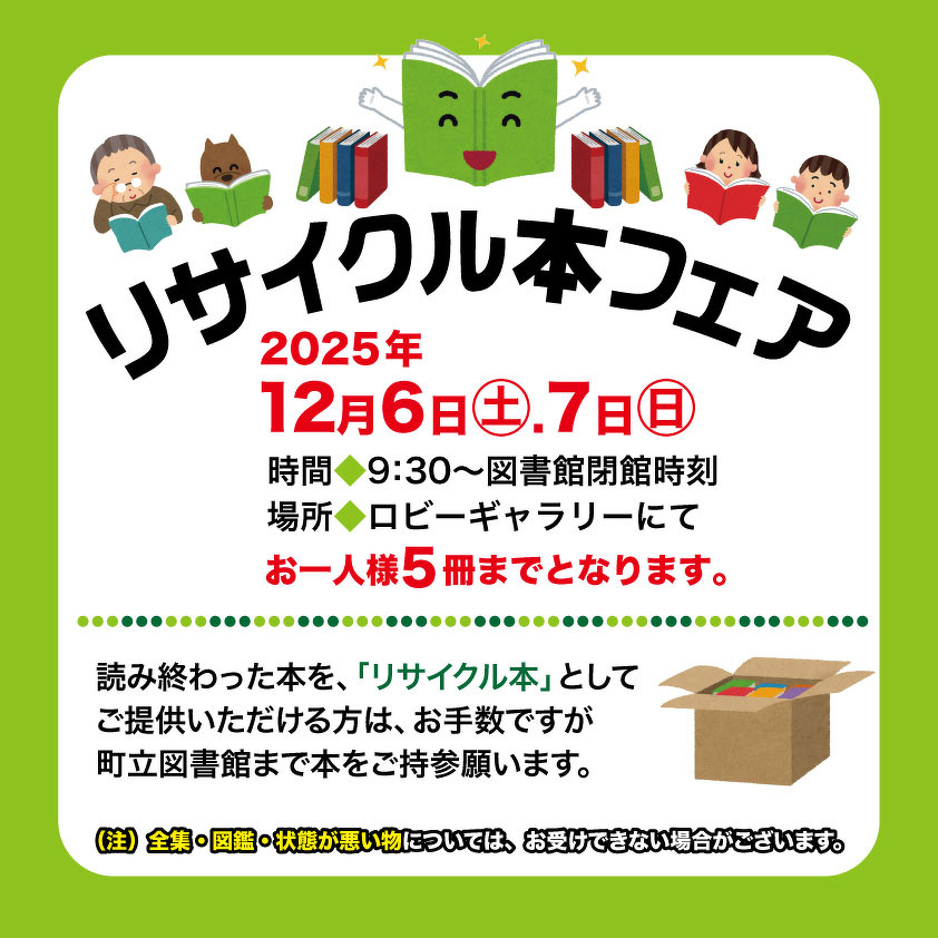 2025年12月6日(土)、7日(日)リサイクル本フェア