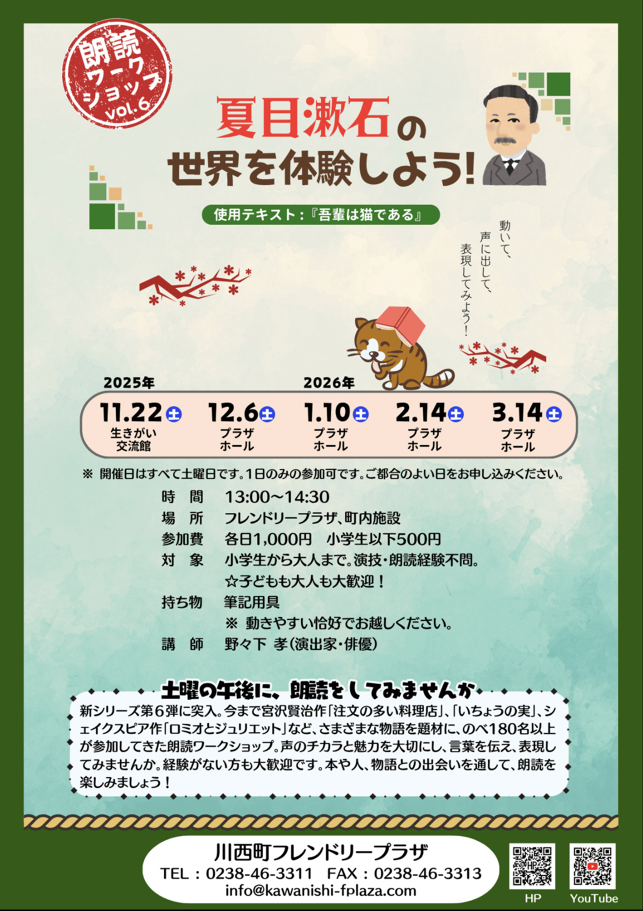 2025年12月6日(土)朗読ワークショップvol.6『夏目漱石の世界を体験しよう!』