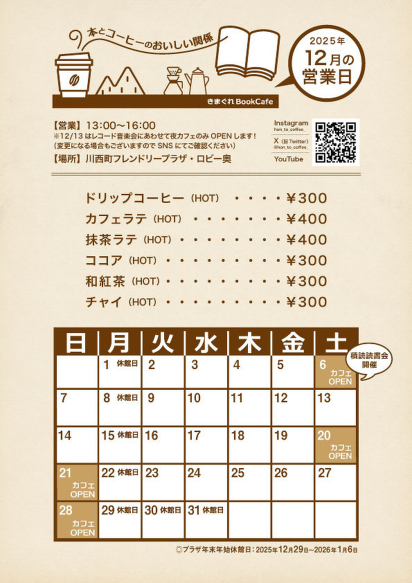 《きまぐれBookCafe》2025年12月の営業カレンダー