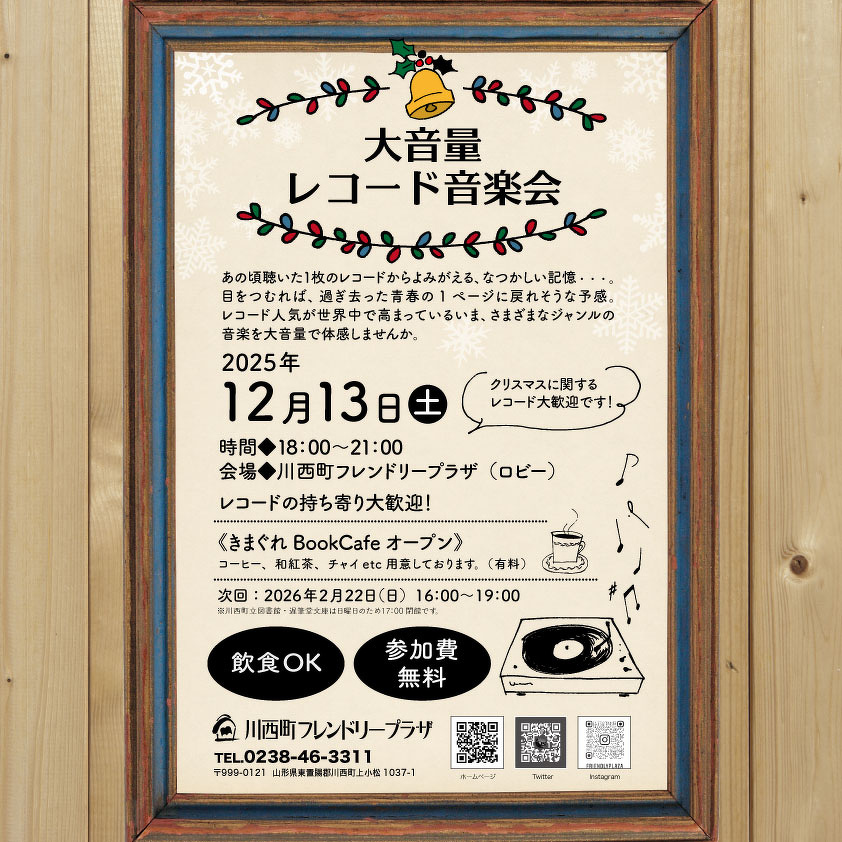 12月13日(土)は、レコード音楽会にあわせて夜カフェもやります!
