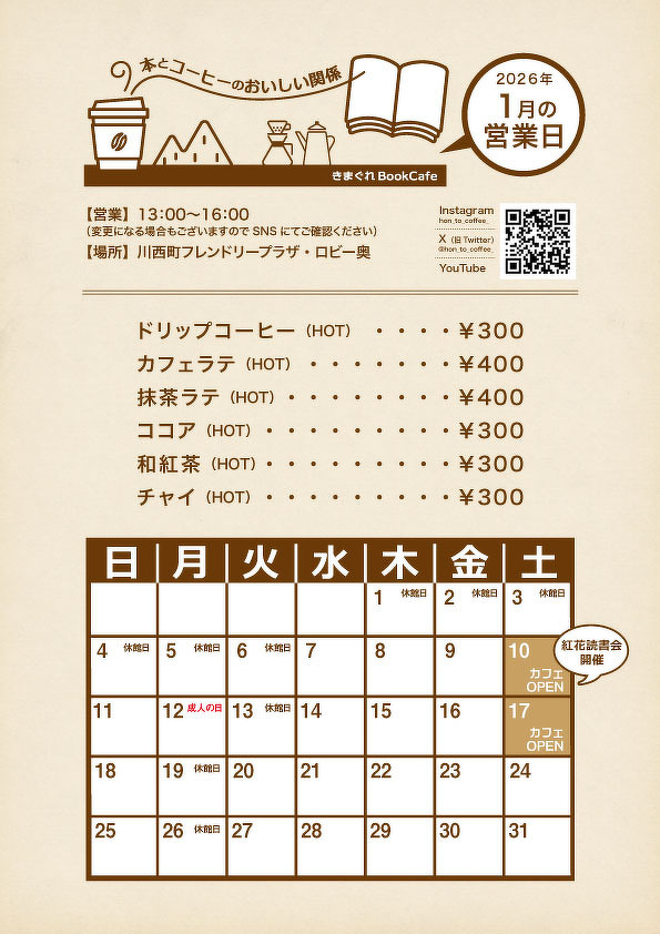 《きまぐれBookCafe》2026年1月の営業カレンダー