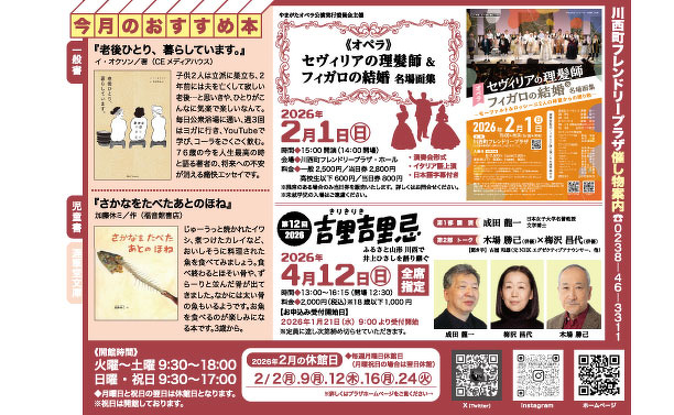 川西町フレンドリプラザ・町立図書館・遅筆堂文庫の通常開館時間は以下の通りです。