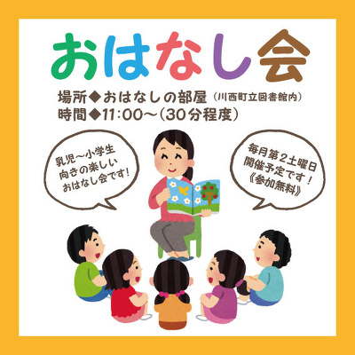 時間◆11:00〜 場所◆川西町立図書館・おはなしの部屋《参加無料》《予約不要》