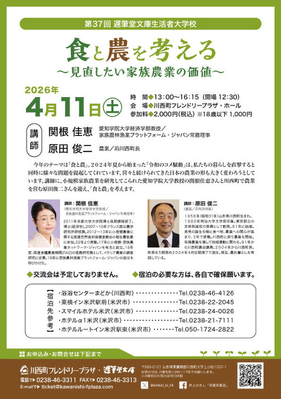 2026年4月11日(土)第37回遅筆堂文庫生活者大学校「食と農を考える〜見直したい家族農業の価値〜」