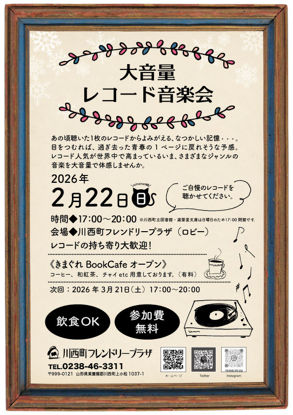 2026年2月22日(日)17:00〜 大音量レコード音楽会