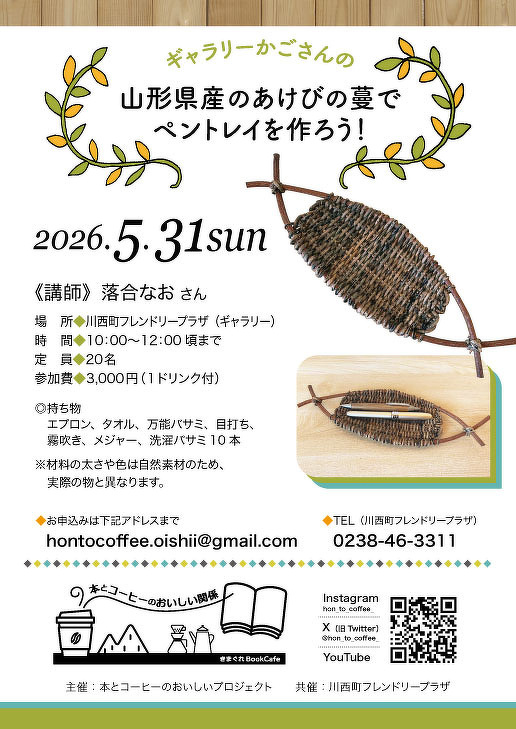【お知らせ】ギャラリーかごさんの山形県産のあけびの蔓でペントレイを作ろう!