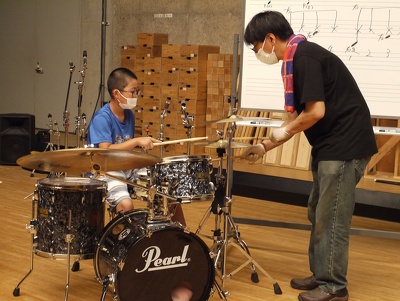 親子連れの方も多く子ども達は初めて触るドラムに興味津々です。