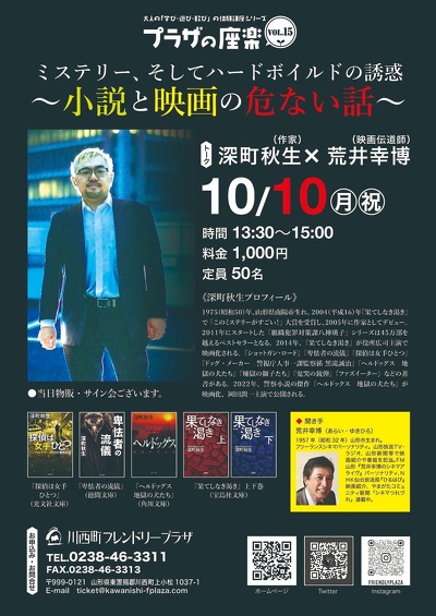 3連休最終日、プラザの座楽vol.15「ミステリー、そしてハードボイルドの誘惑~小説と映画の危ない話~」を開催しました。