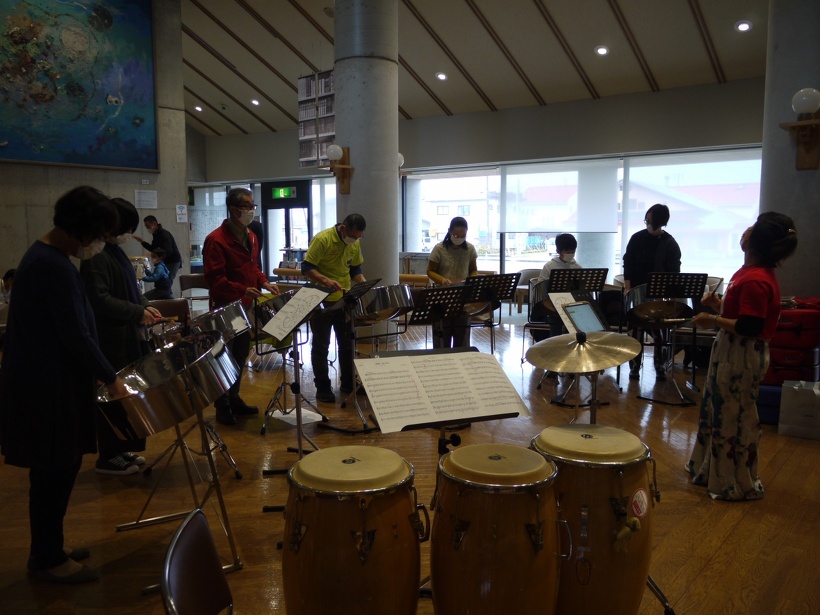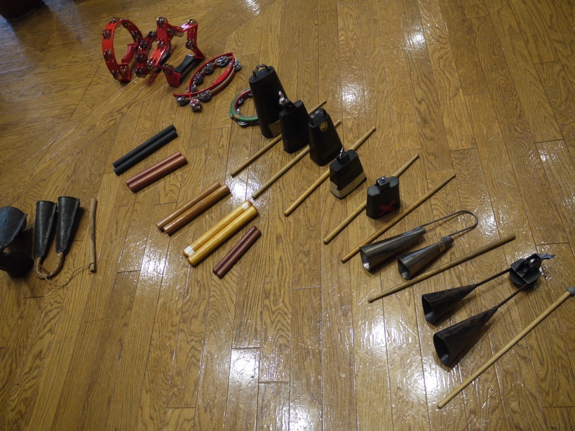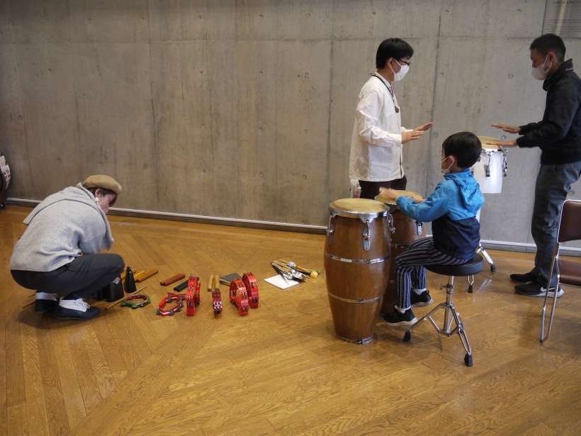 今回もさまざまな楽器を持ち込んでいただき、演奏、サポートをしていただきました。コンガ、カウベル、アゴゴ、カバサ、タンボリンなど、種類の豊富さに圧倒。参加者のみなさまも興味津々でした。