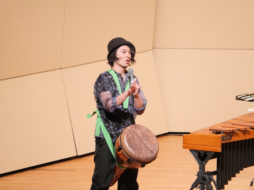 その後、ズブシロ・チャレンジ・プロジェクトの「スティールパンをたたいてみよう!」でワークショップを