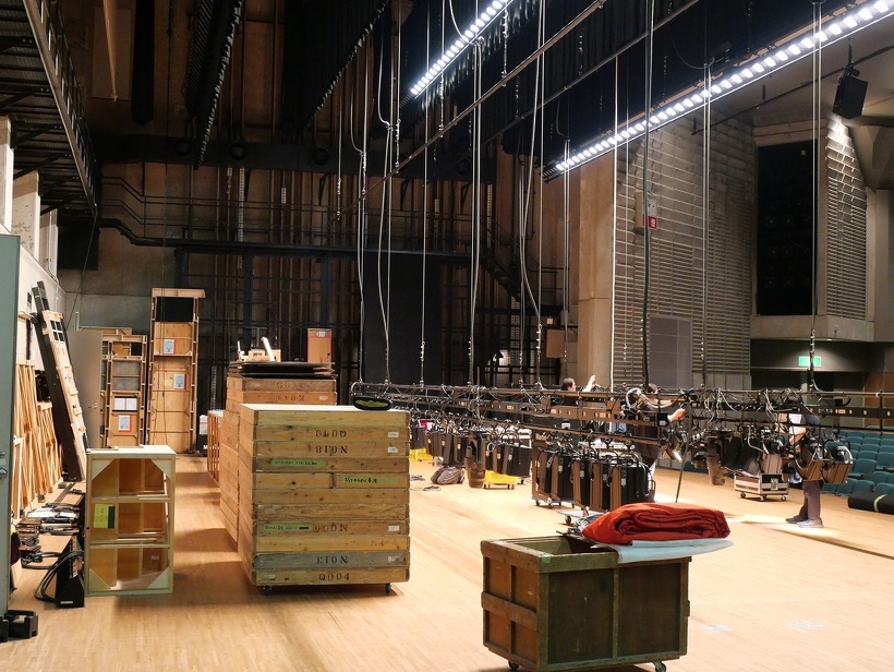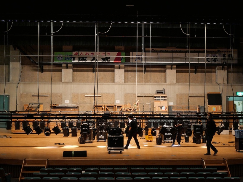 ホールでは搬入作業も無事に終わり、技術スタッフの方々が舞台に命を吹き込んでいきます。