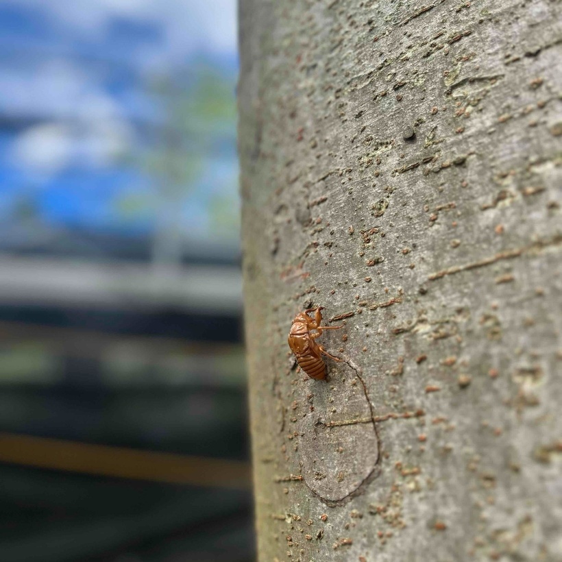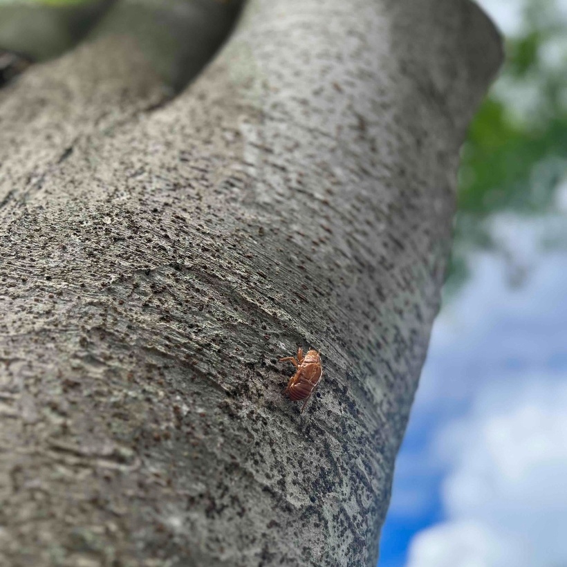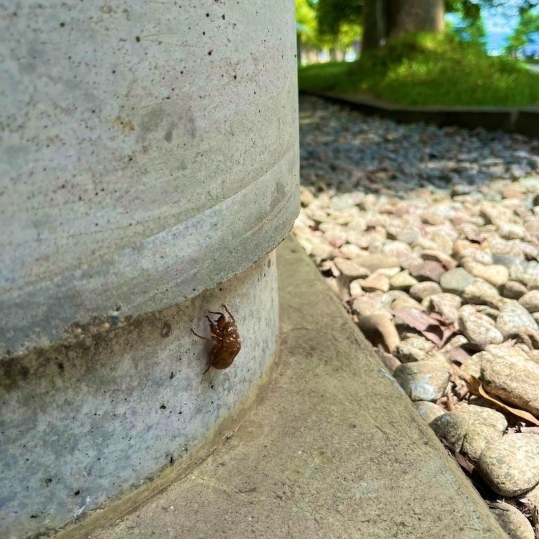 今年のセミと昨年のセミの羽化の位置が全然ちがうのが面白いです。