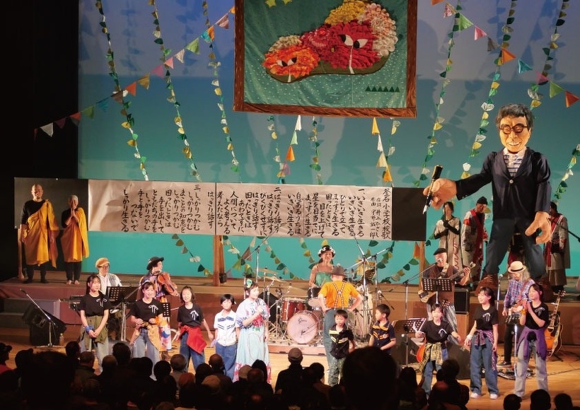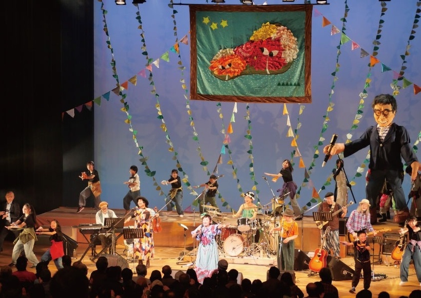 「ひょっこりひょうたん島」では、県内から集まったひょっこりダンサーズ達が曲に合わせて元気に踊り、舞台の後ろには4mはゆうに超える巨大な井上ひさし人形も登場し、本当にここでしか見れない最高のステージとなりました。