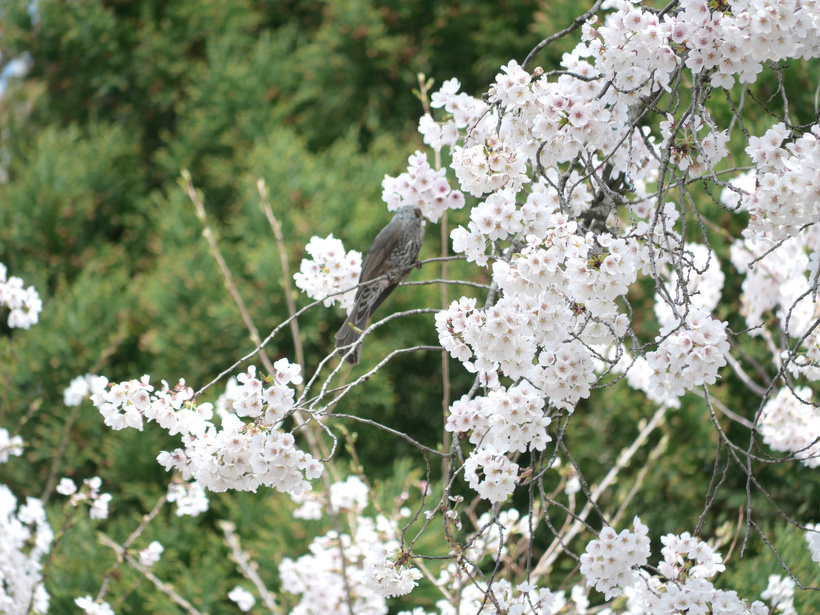 桜の木々の中で戯れる野鳥をレンズに収められてホクホクしてます。が、鳥の種類がわからず…