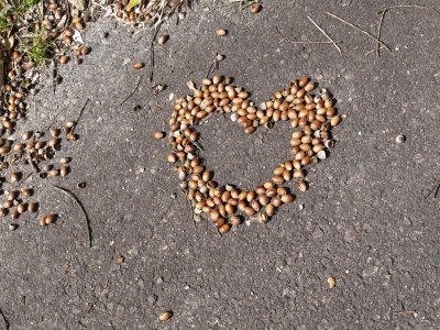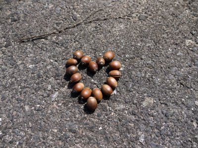 あらためて言葉にしてみると、どんぐりの魅力がいっぱいです。そんなどんぐりでハートを作ってみました。