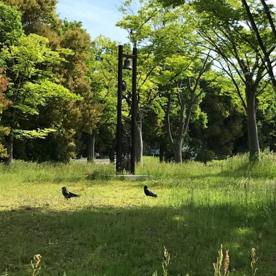 あらためてカラスをじっくり観察すると、初夏の日差しの中の圧倒的な黒は美しくもある。(仁科)