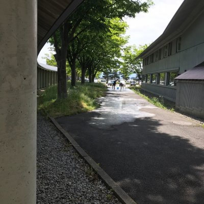 最近プラザで朝の日課になっているのが、カラスのフン掃除。どうやら敷地内の樹木を寝床にしているらしい。