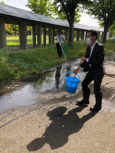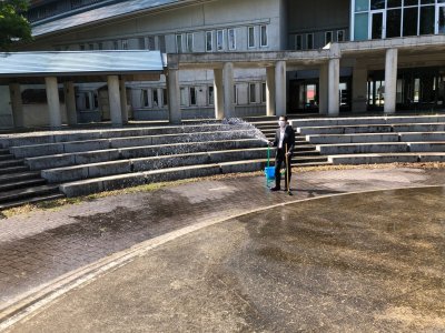 はじめは水を流してゴシゴシとこすっていたのだが、