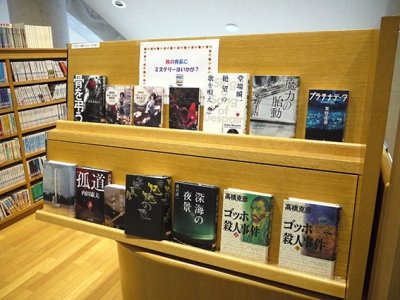 毎月、町立図書館ではテーマを決めて展示をしています。(町報にも載せてるので要チェック!)今回のテーマは「ミステリー」。