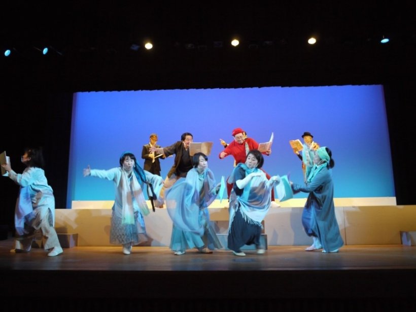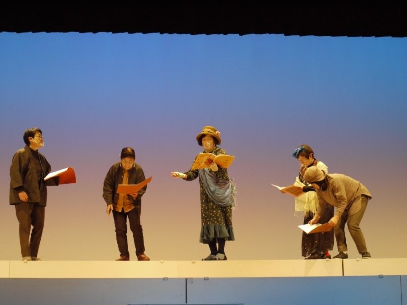 誰が予想できたでしょうか。この山形県置賜に位置する小さな町 川西町に、地元はもちろん山形県内各地、宮城県、福島県から30名近くのメンバーが集まったのです。小学生3年生から70代までと年代は幅広く、フレンドリープラザに集まり、月2回の稽古に励みました。これはきっと『水の手紙』を通じて、井上ひさしさんが繋いでくれたご縁なのかもしれません。
