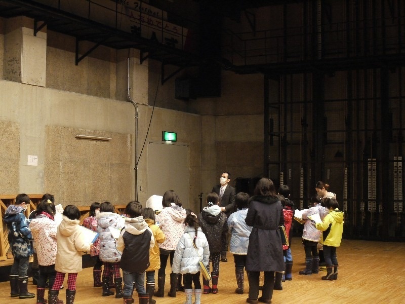 ホールでは、実際に舞台の上にも立ち、楽屋やスタジオなどバックヤードもご案内。普段はなかなか見る機会がない場所なので、みなさん興味を持ってみてくれました。
