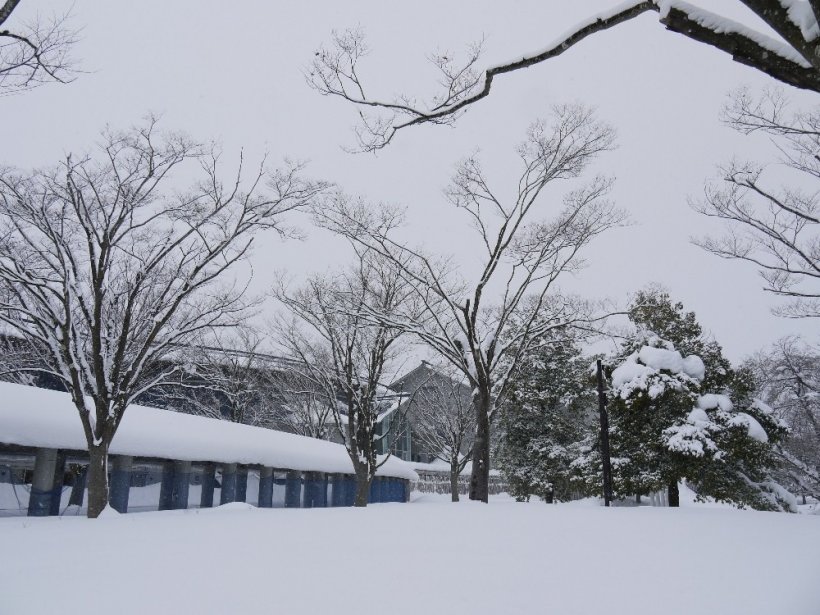 本日は雪。年明けしてから、プラザ入口周辺は雪かきが欠かせません。