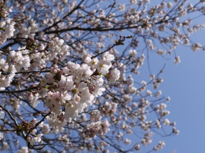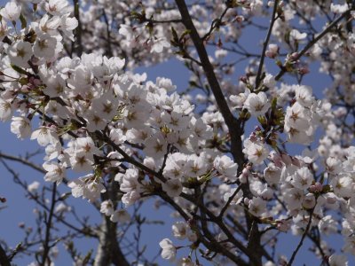 まだ7分咲きくらいですが、風にも負けずに咲いています。散歩コースにはもってこいですよ。