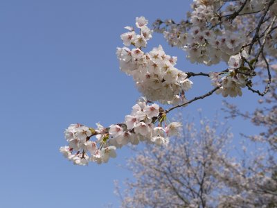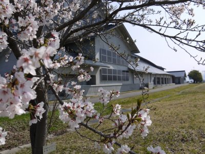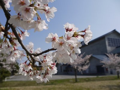 フレンドリープラザの裏側にも若い桜の木が数本あり、そちらは少し葉桜気味ですが暖かい日差しの中、ピクニックには最適な場所です。